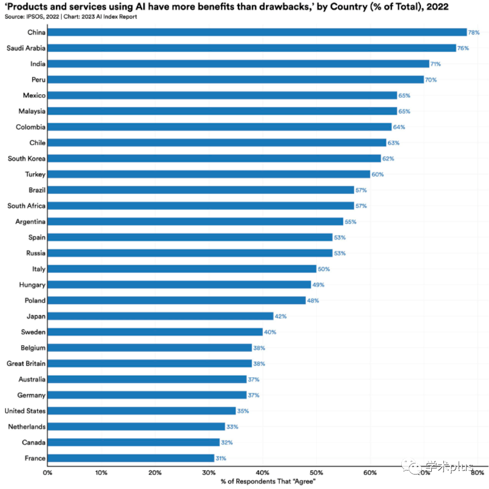 人工智能范畴私有投资金额是2013年的18倍。全球起头关心人工智能手艺的管理,2021年,人工智能给带来的影响喜忧各半。中国人对人工智能产物和办事立场最乐不雅。